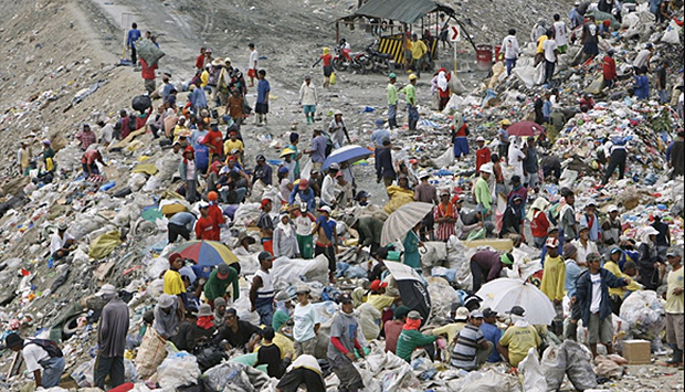 The Promised Land is a real mountain, 50 feet high and covering 74 acres, the main dump for 10,000 tons of garbage produced in Manila every day. It began as a ravine, and the garbage was meant as landfill for a planned housing project.